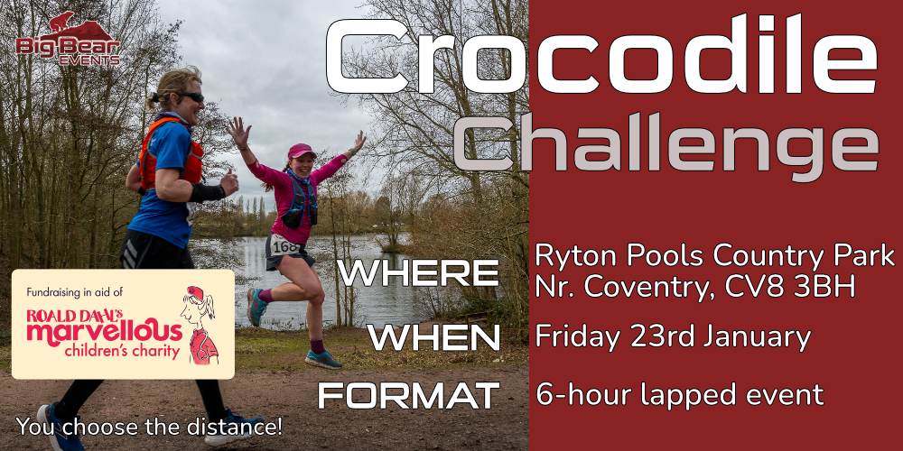 We will also be donating 7.5% of the entry fees to the Crocodile Challenge to Roald Dahl’s Marvellous Children’s Charity (Registered Charity No. 1137409). As is the case with all of our events you are able to make a one-off donation on sign up if you wish to contribute to fund their amazing work too.
